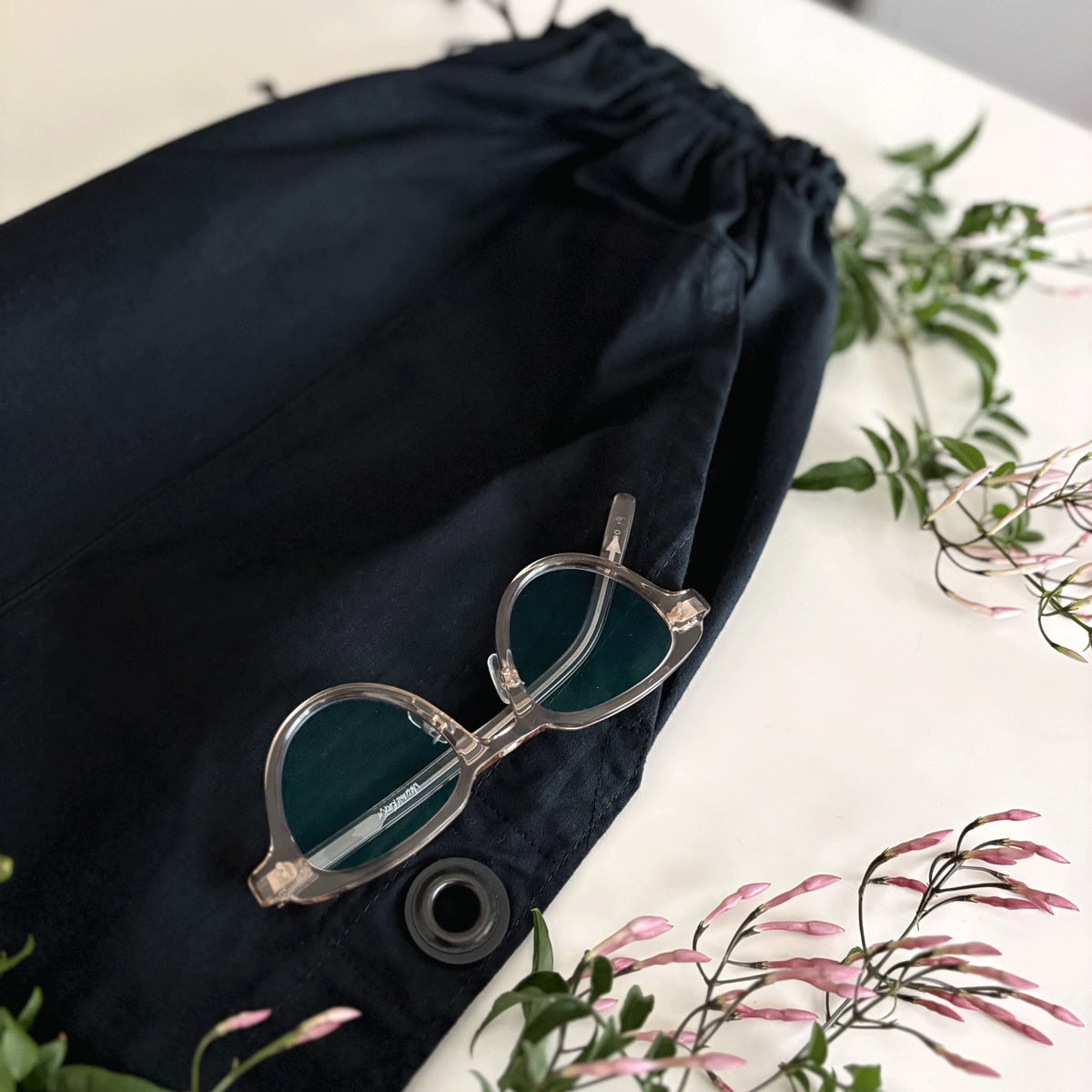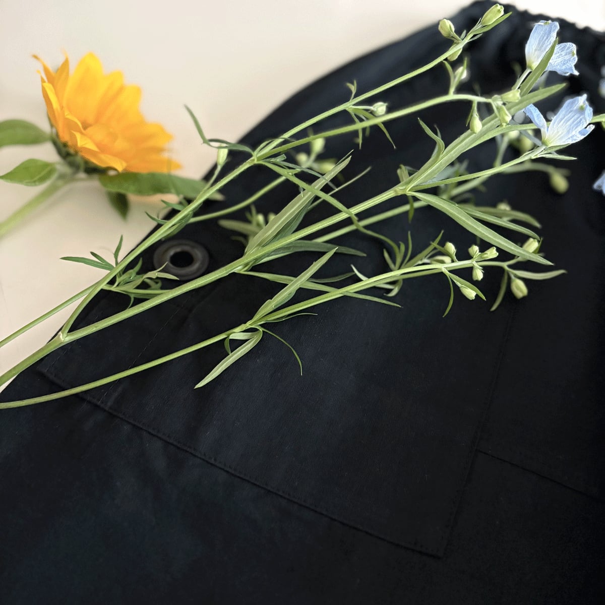 ポケットと裾にハトメをいかしたドロワーズ
