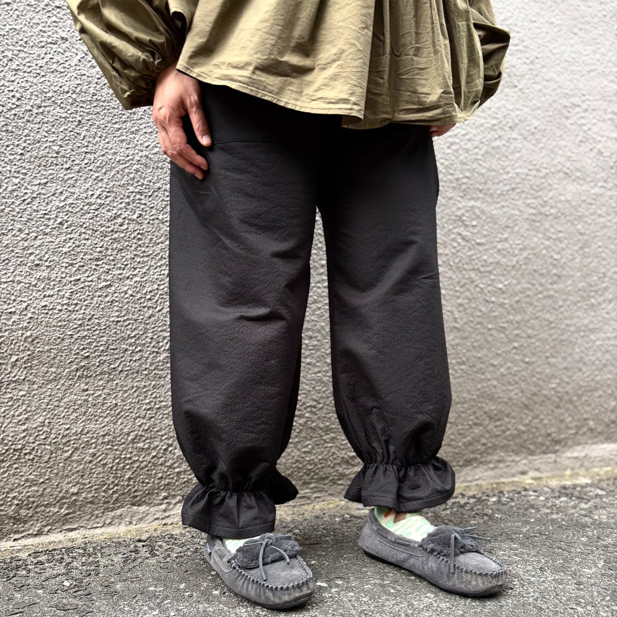 ふんわりとした丸みのあるシルエットに、裾のゴムを効かせた独特のフォルムは、