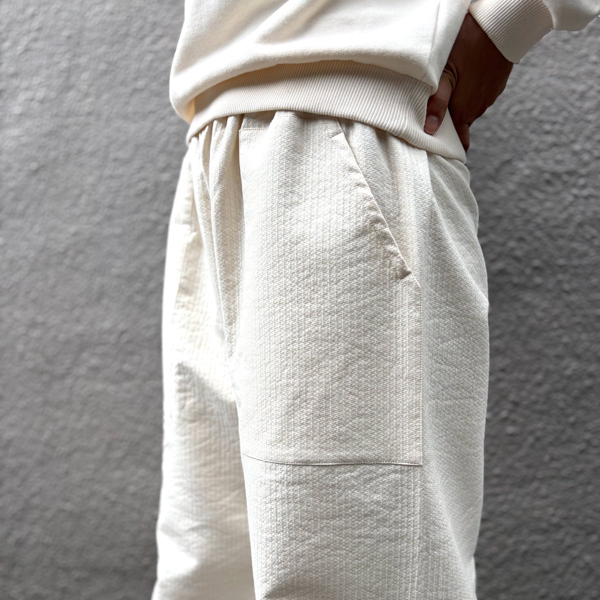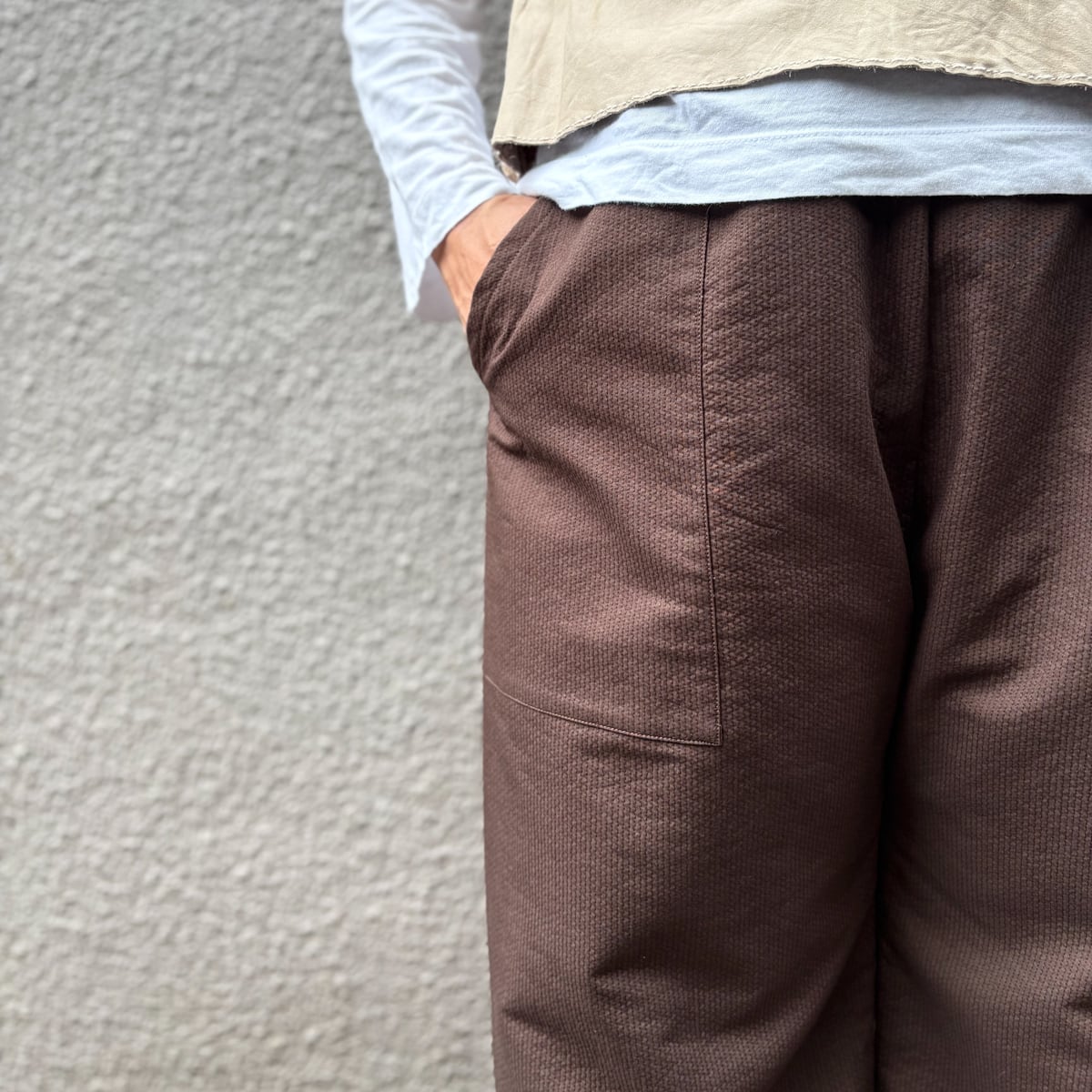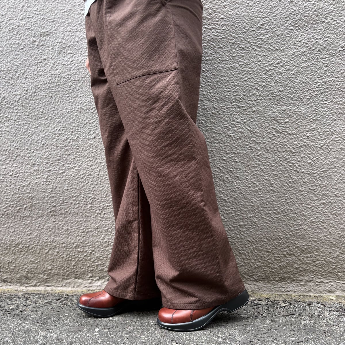 ぽこぽことした立体感が魅力の、コットン100%ワイドパンツ。