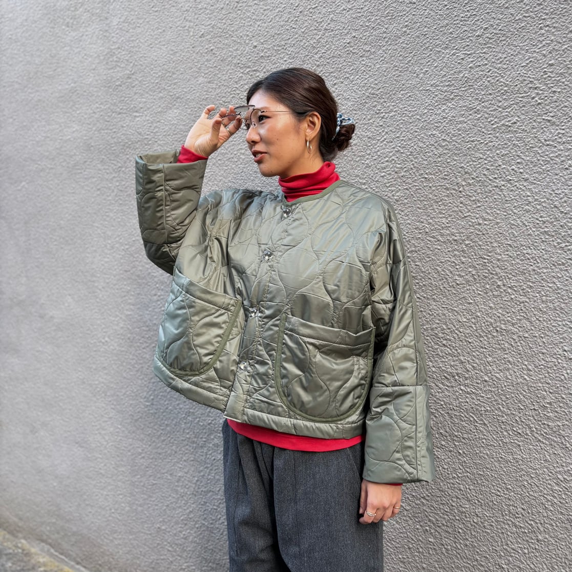 丸みのあるキルト模様と、ゆったりとしたドルマンスリーブが特徴で、