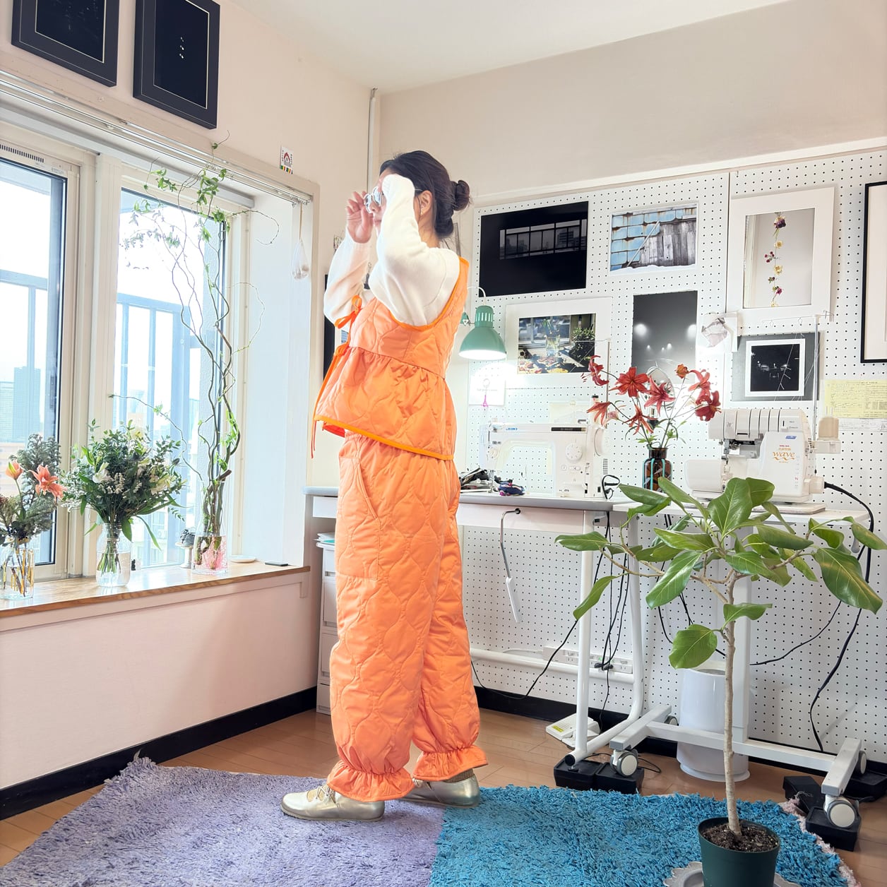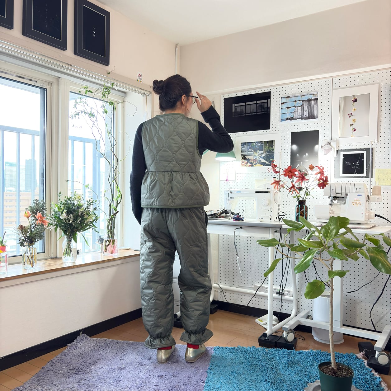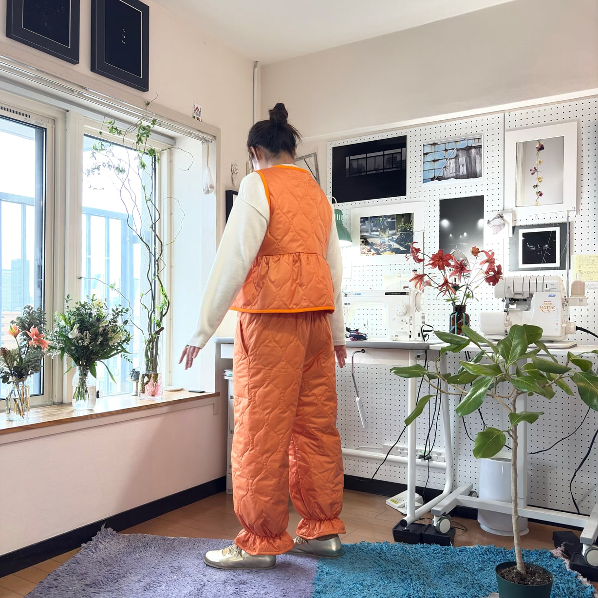 同素材のキルティングベストと合わせた