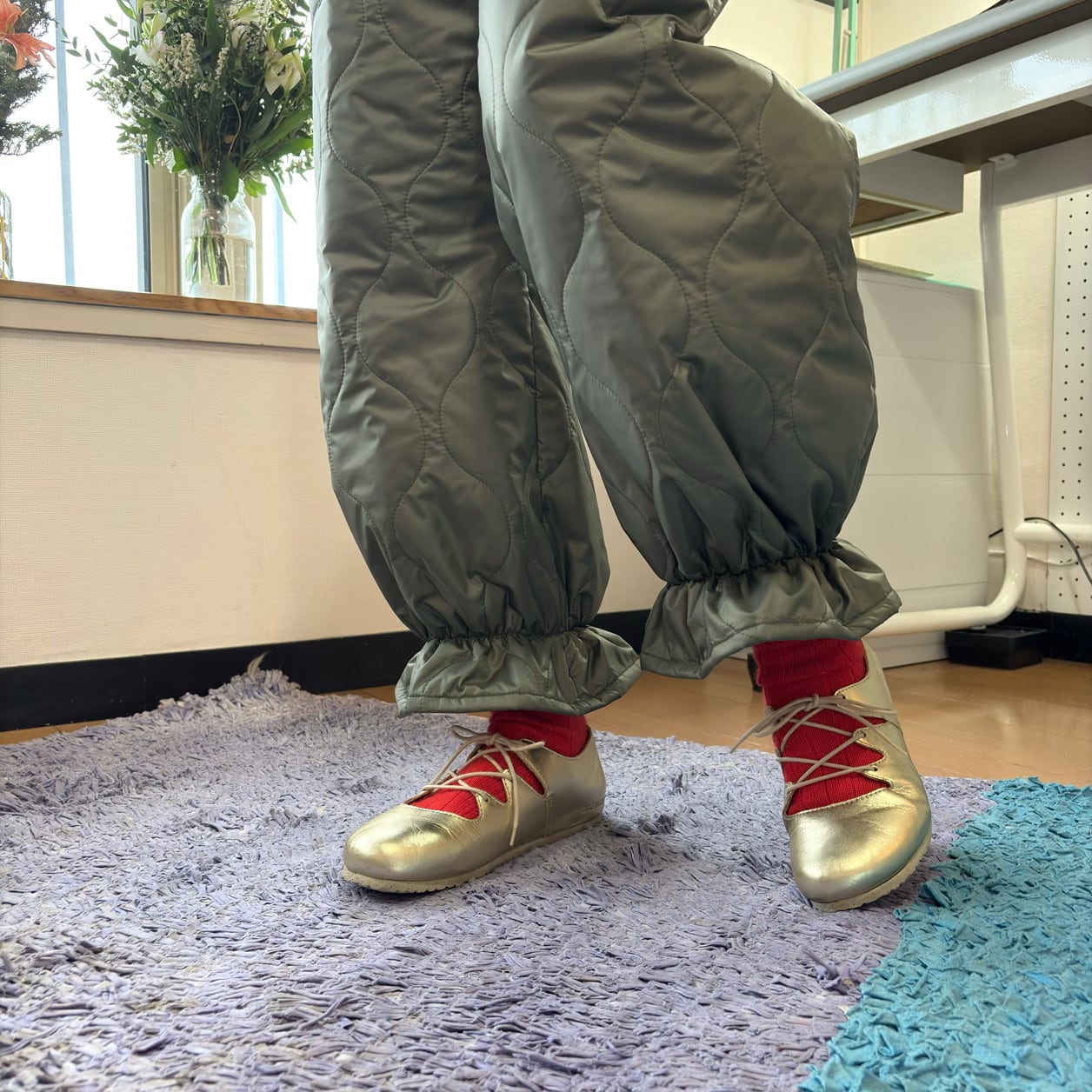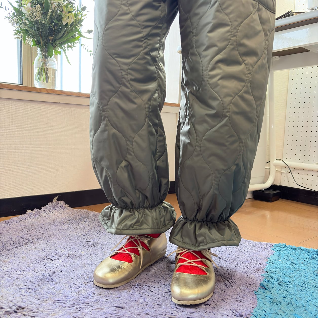 裾はゴム仕様で足元に丸みとリズムをプラスしています。