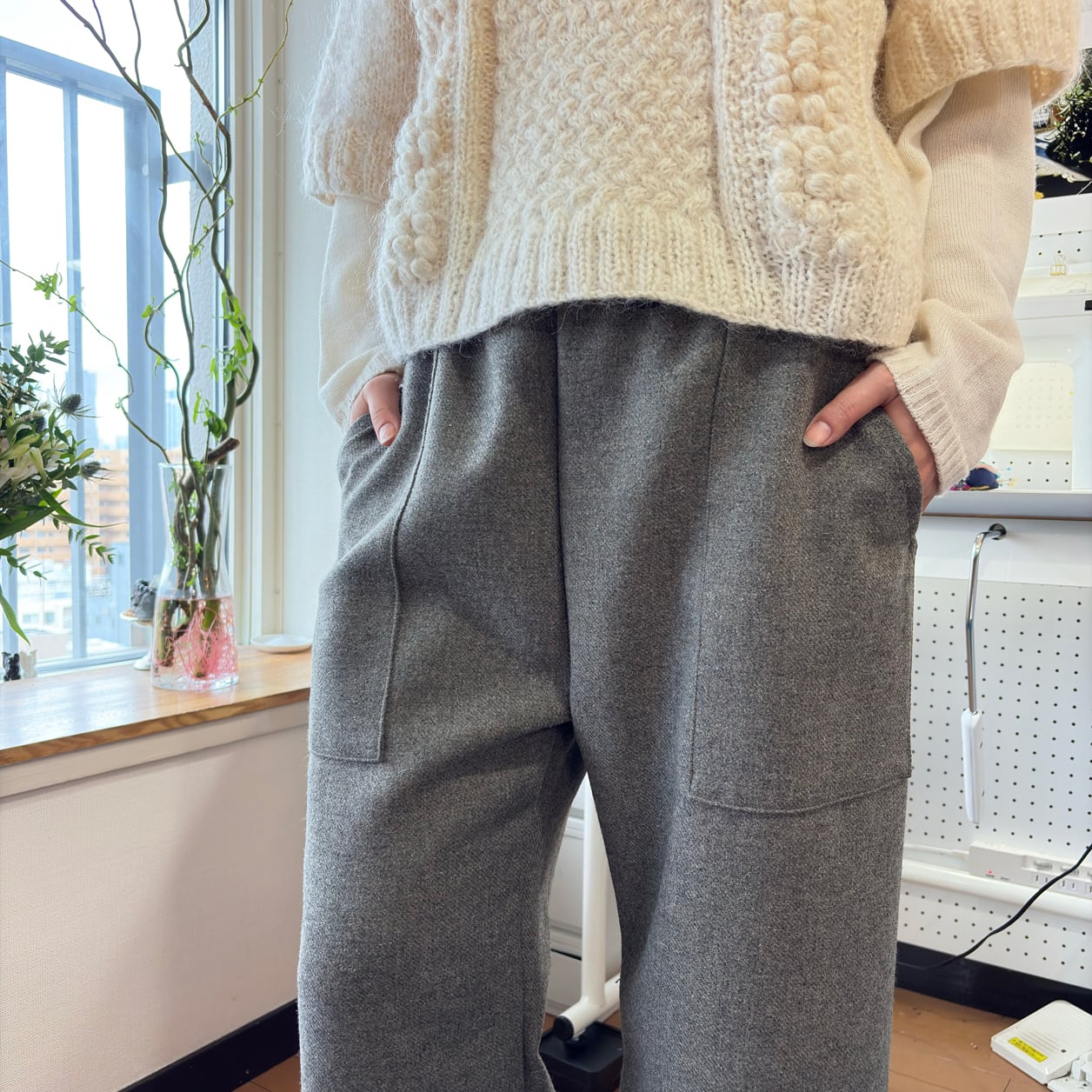 ほどよく厚みのあるウール生地は、