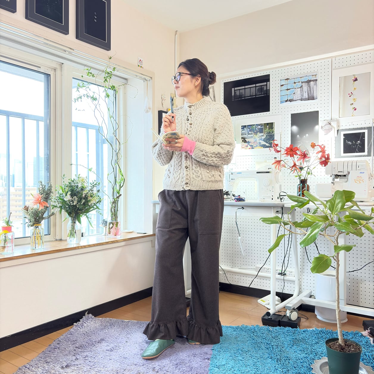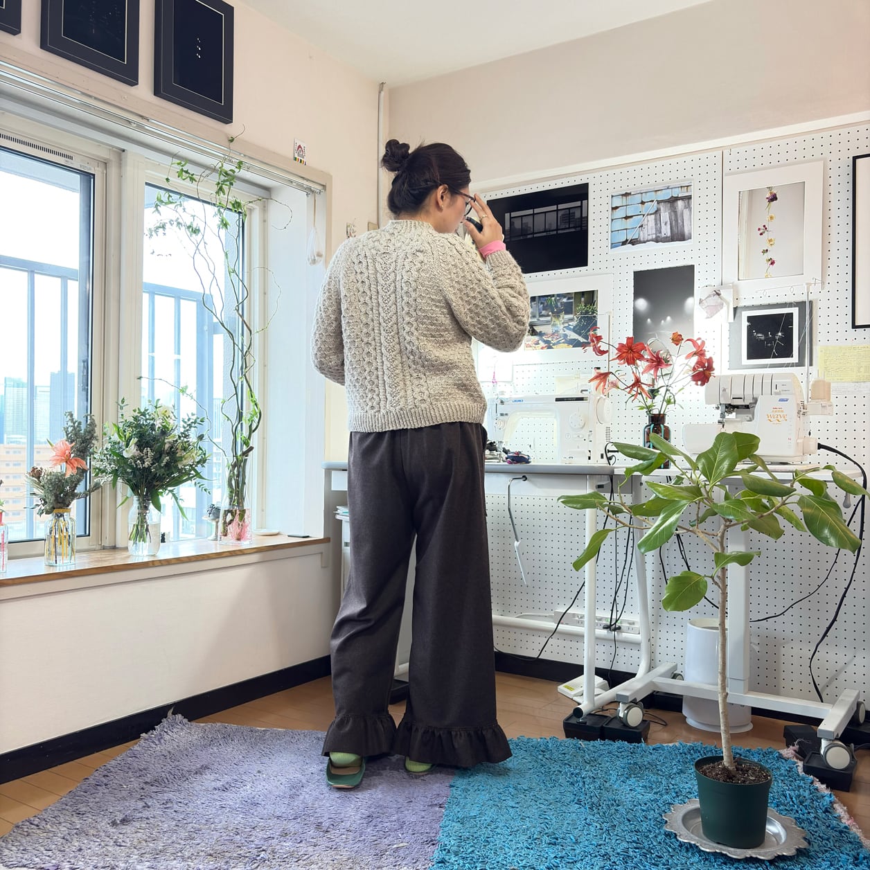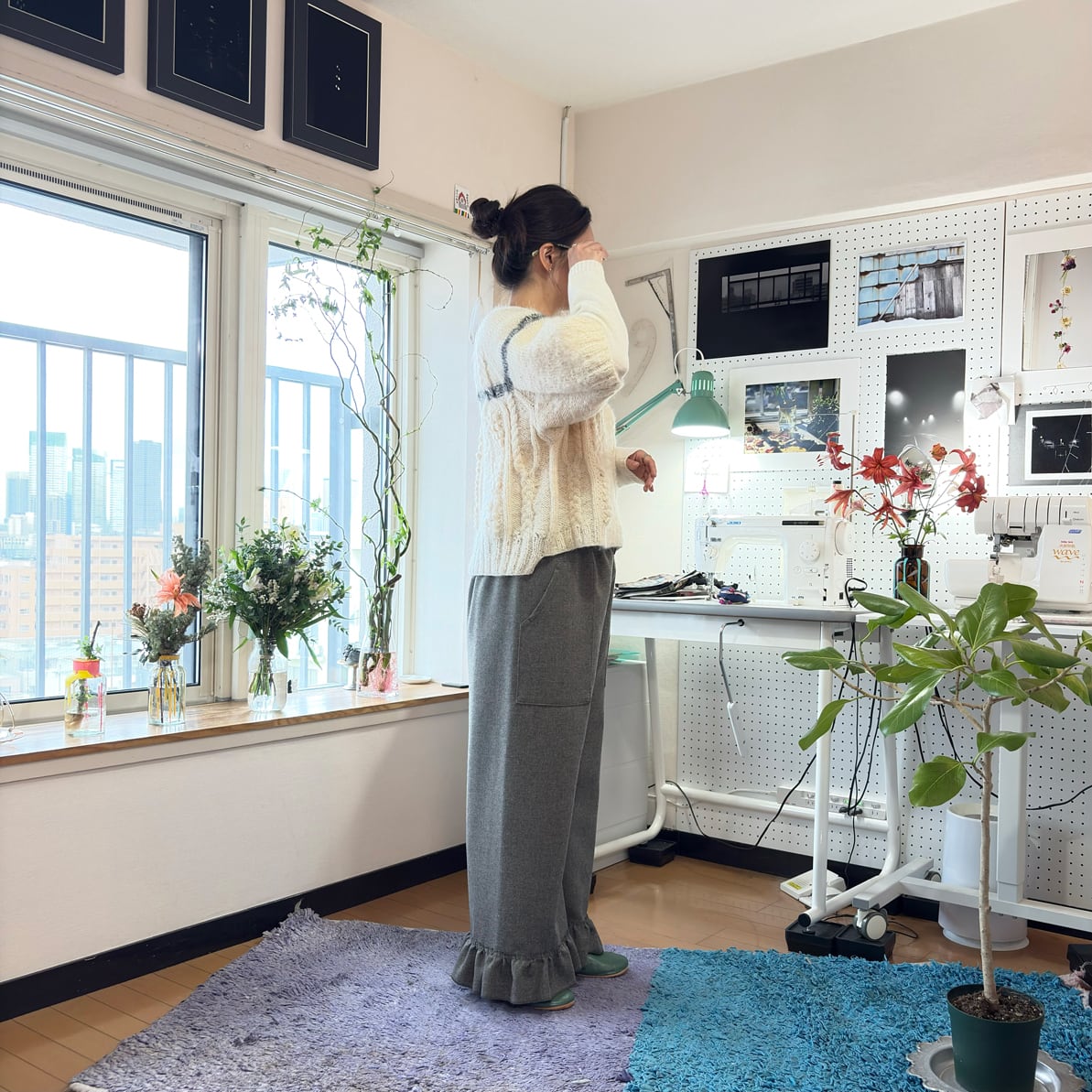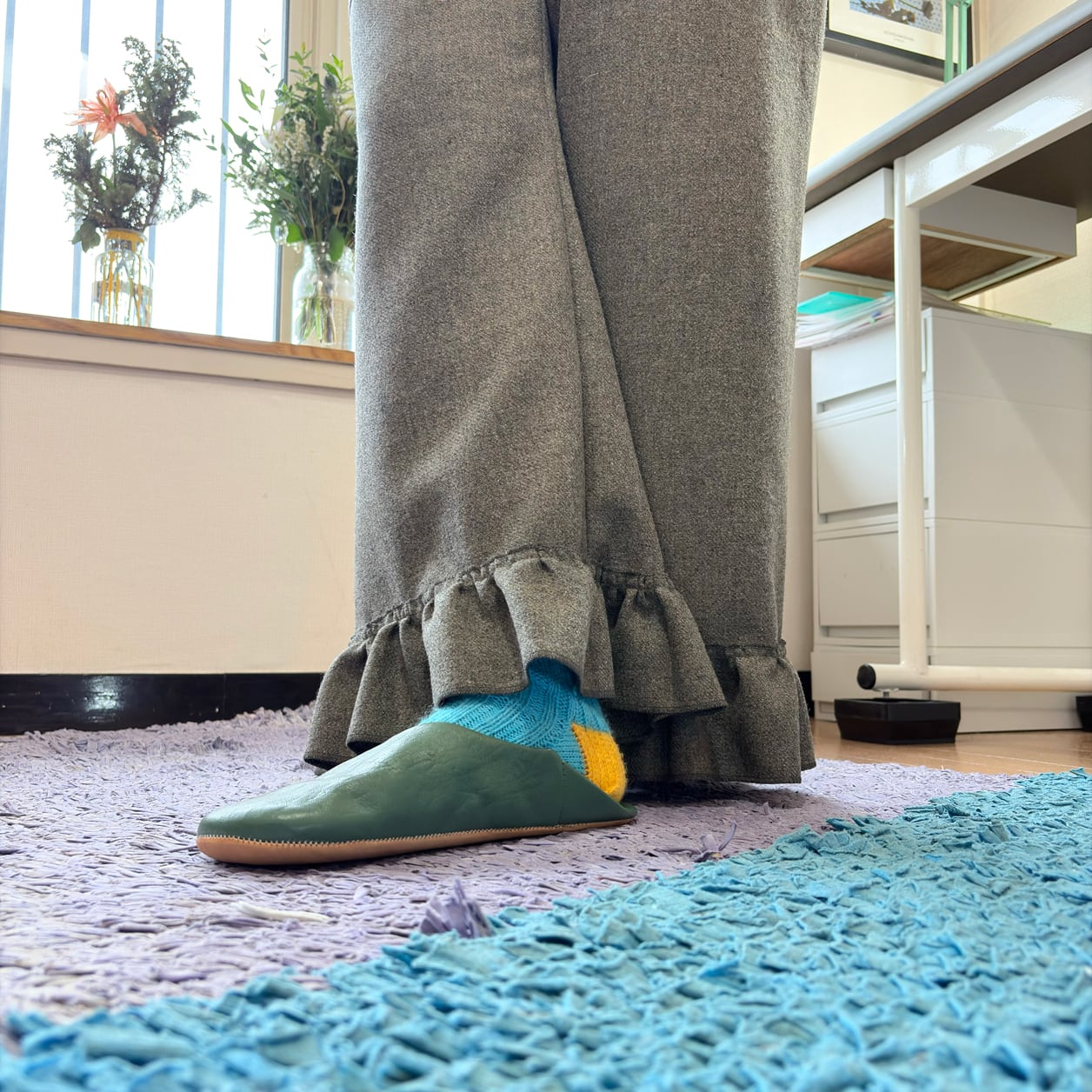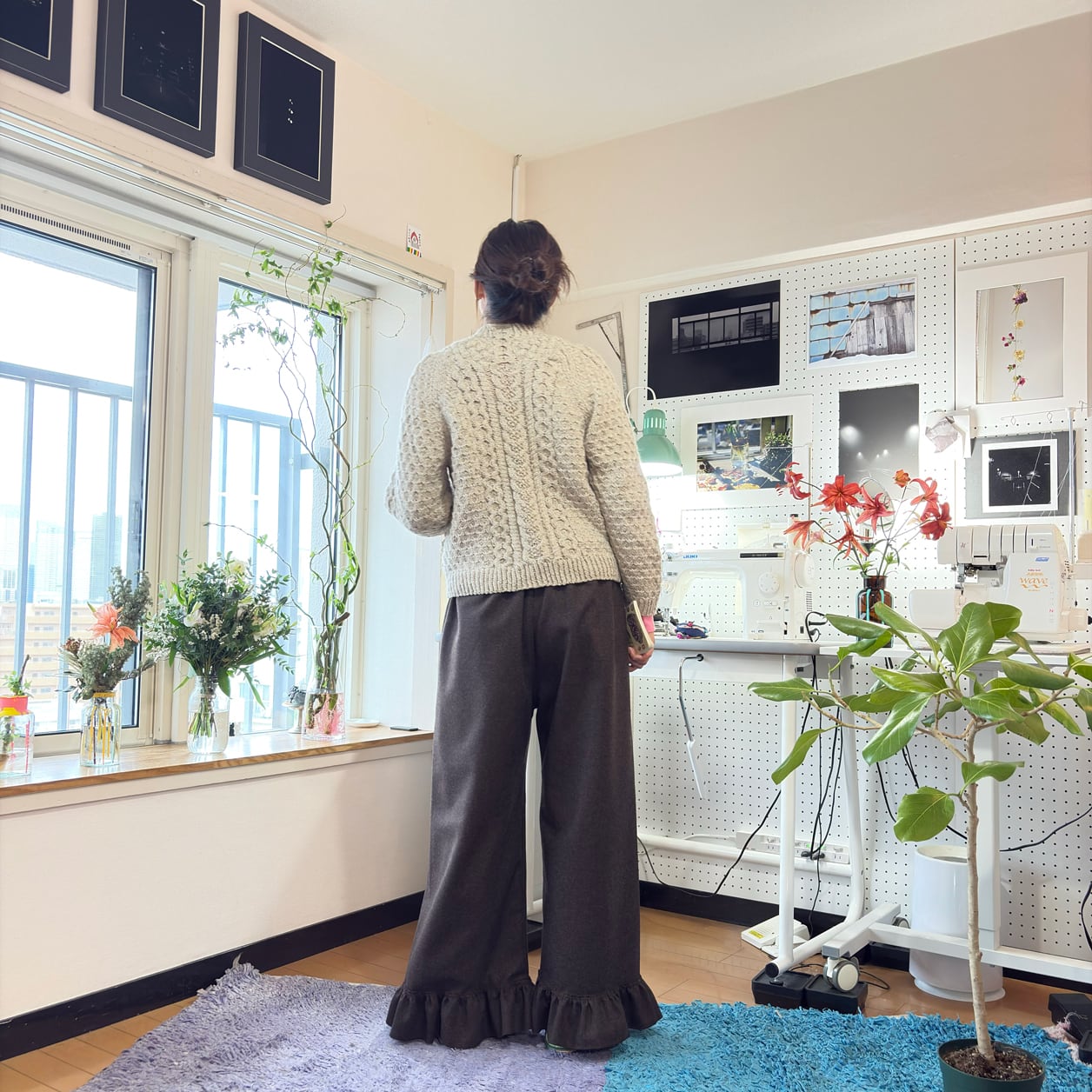 シンプルなワイドシルエットに、裾のフリル切り替えが