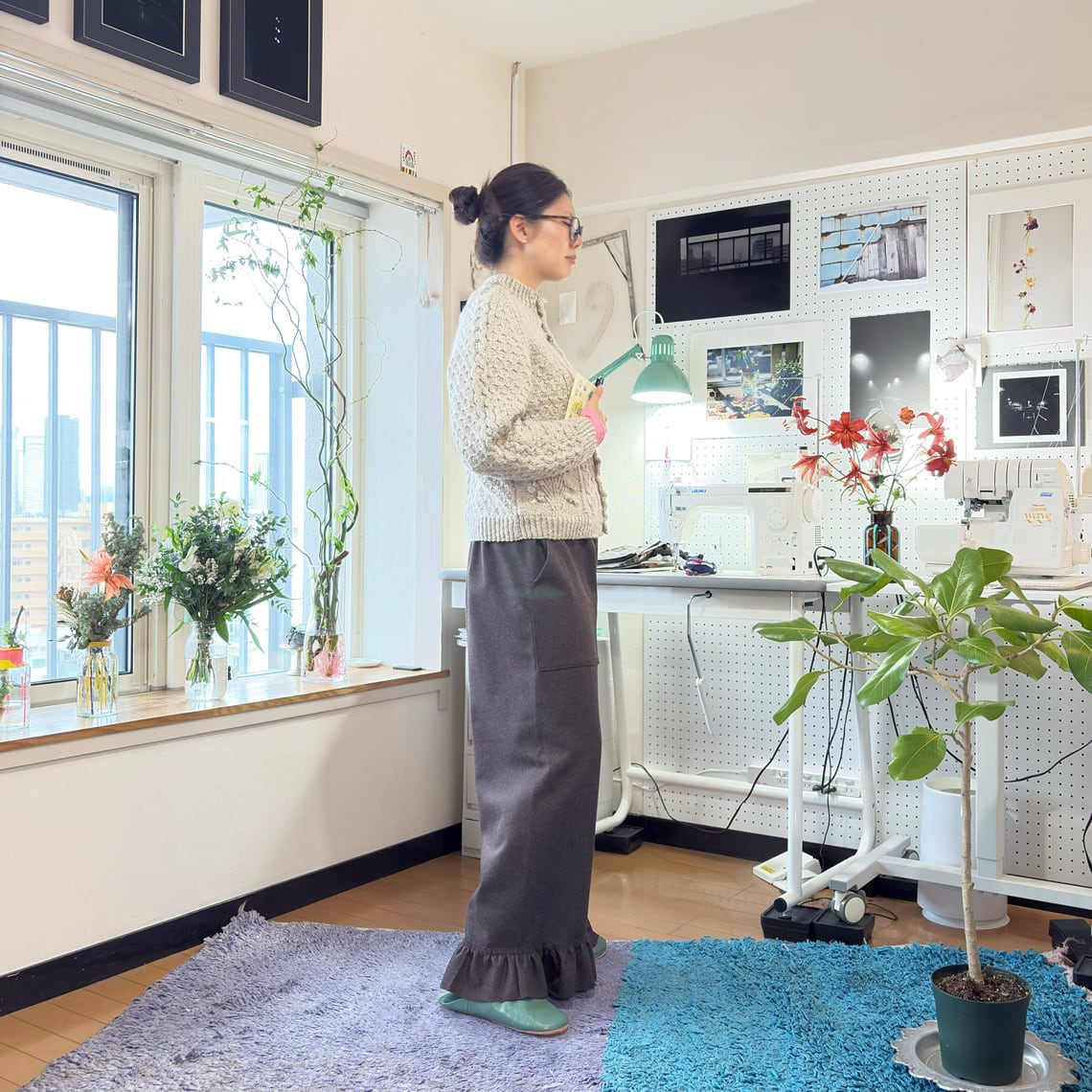 ニットやブラウス、アウターとも相性の良い一着です。