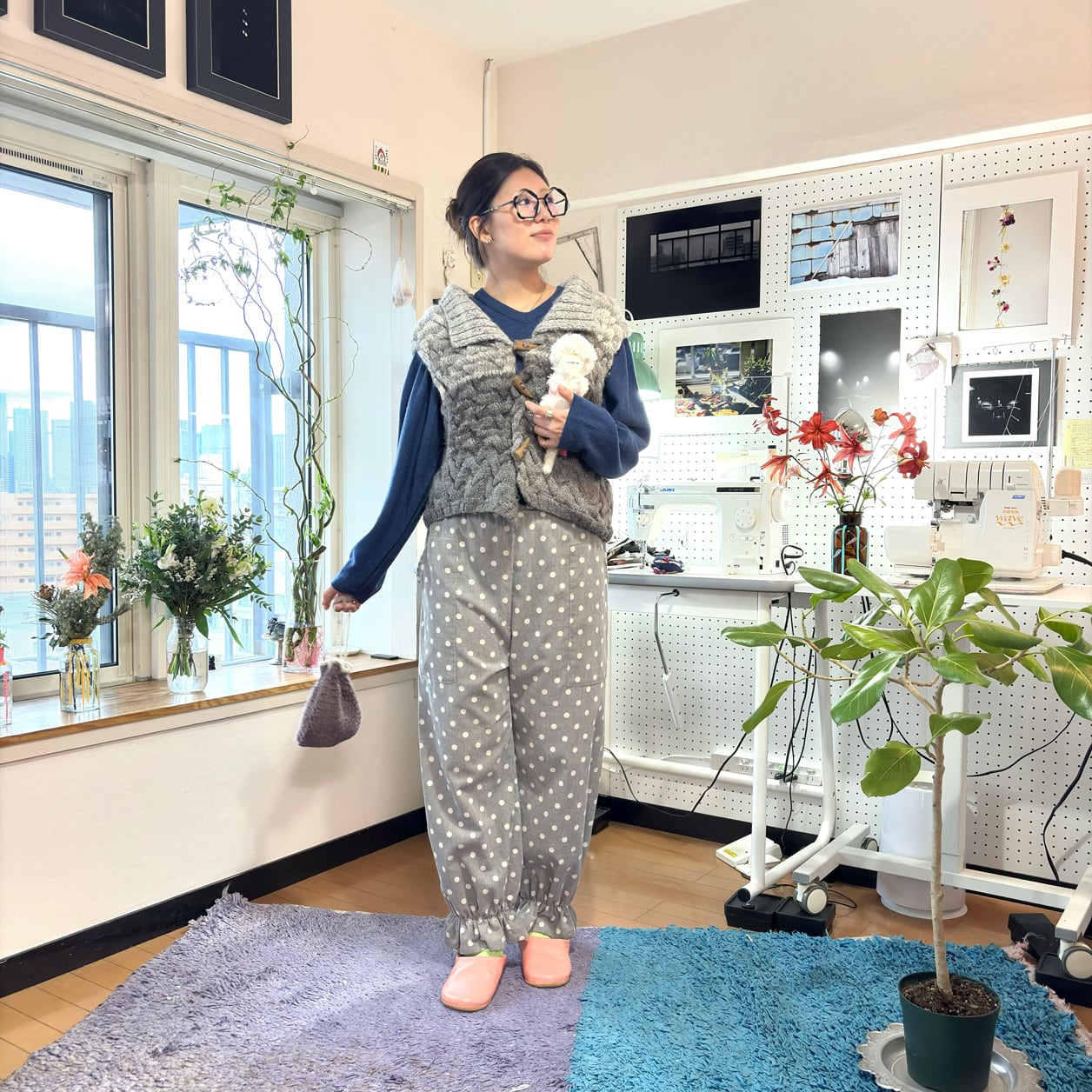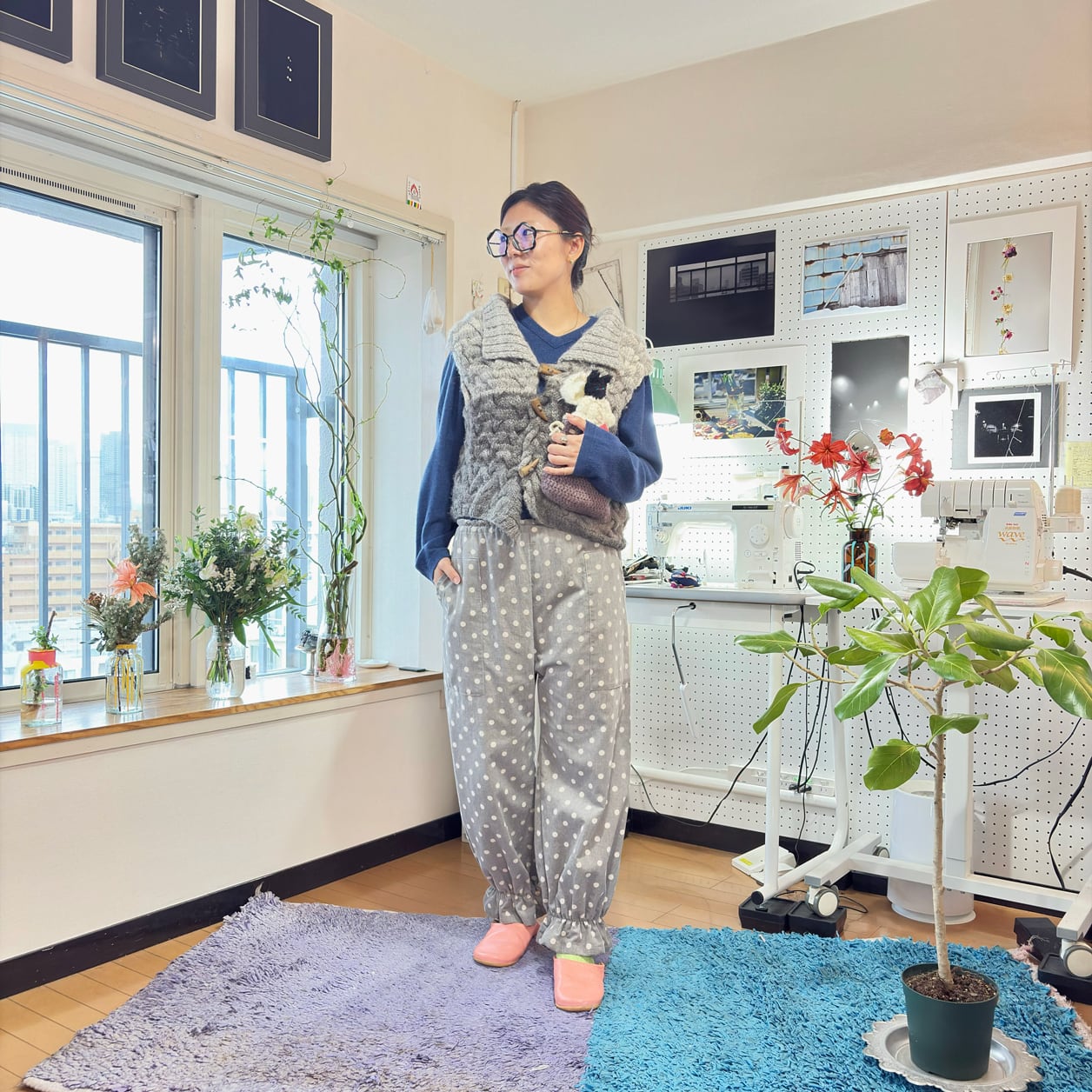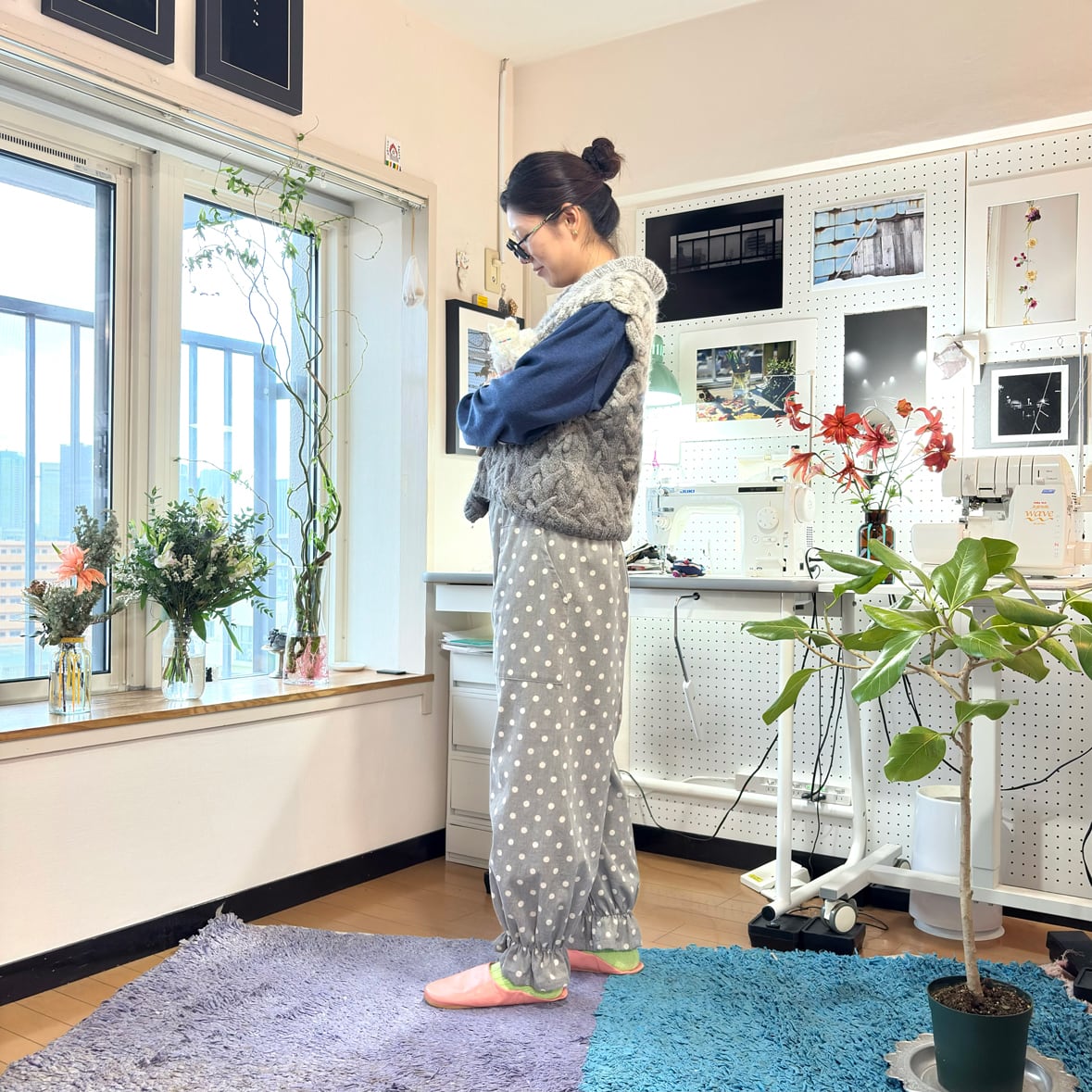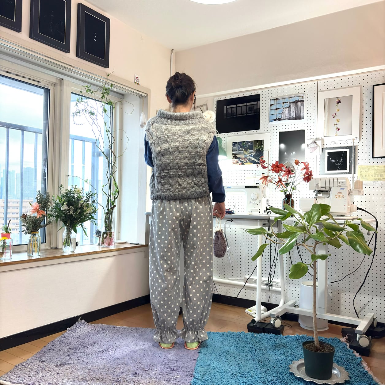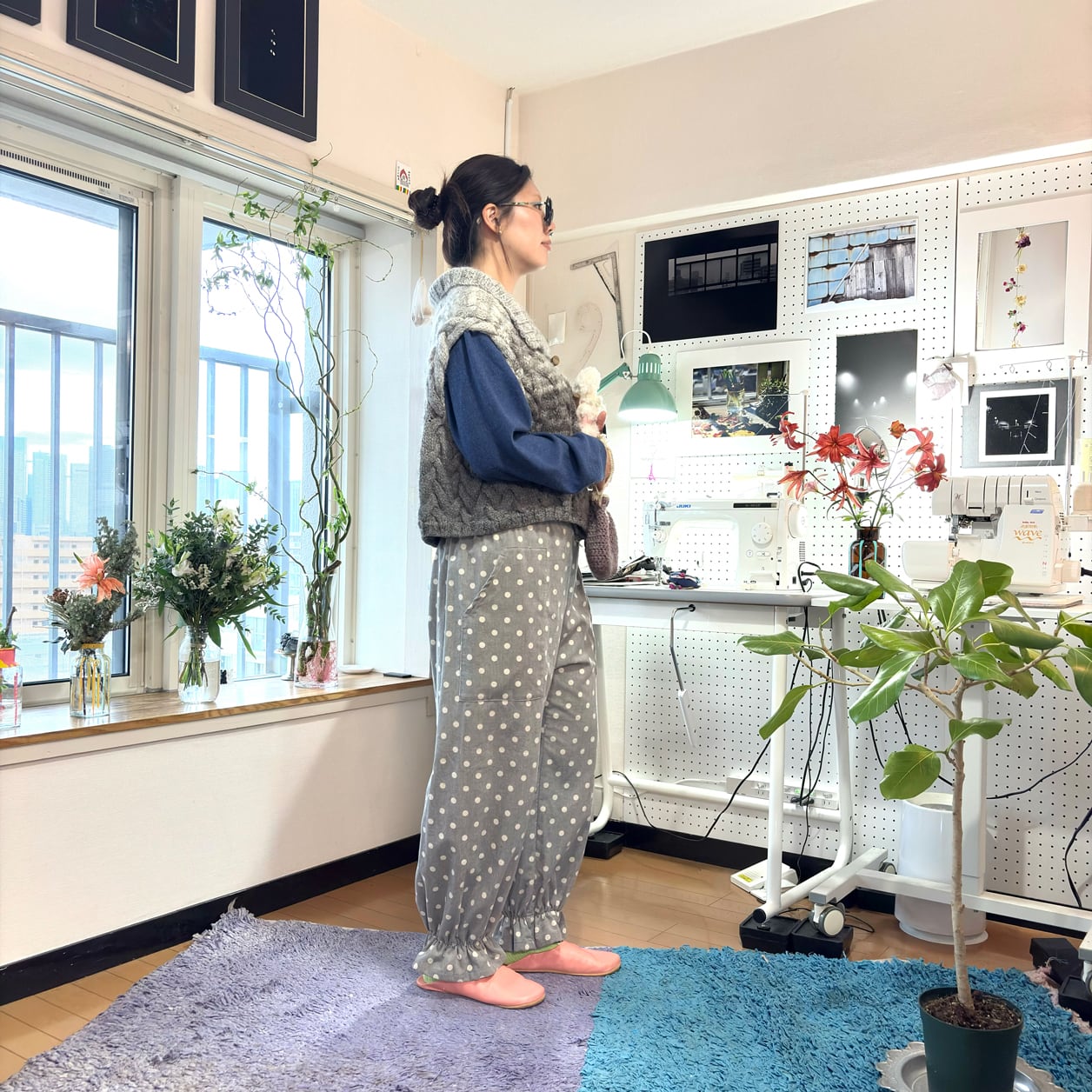 裾はゴム仕様で、足元に自然なリズムが生まれます。