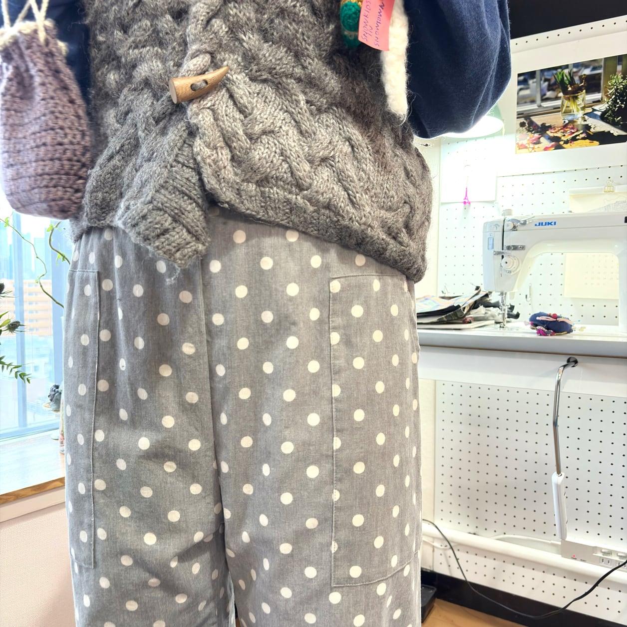 デッドストックの水玉柄コーデュロイ生地を使用した、
