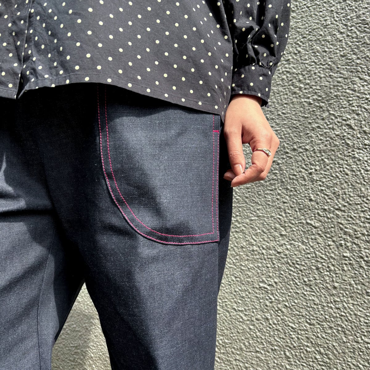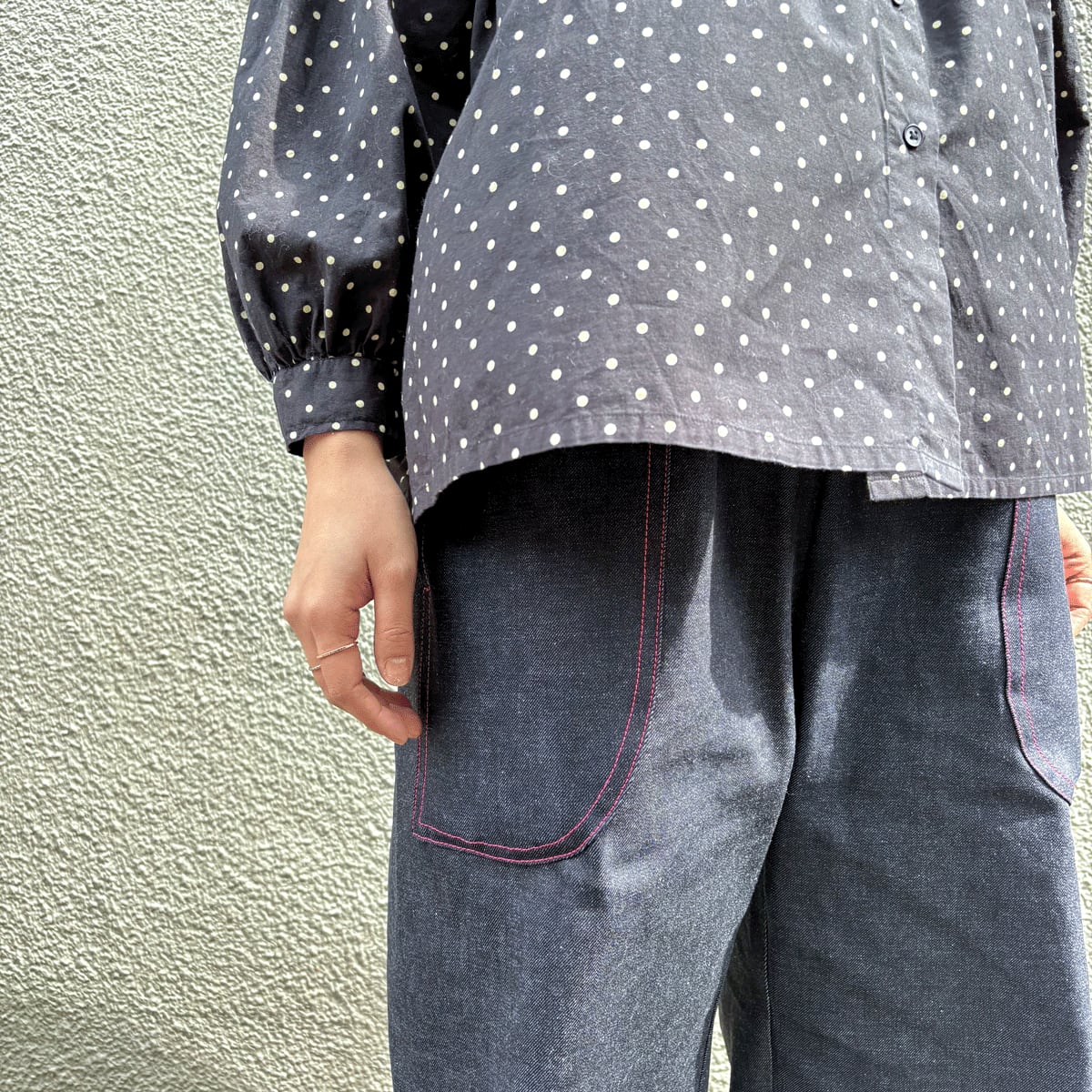 シンプルなデニムの中に、さりげかな彩りを加えています。
