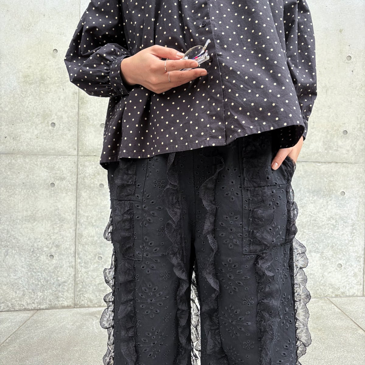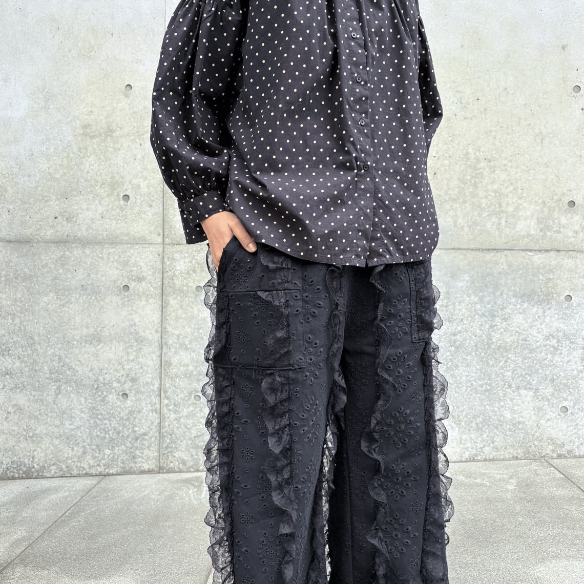 刺繍とレースフリルを重ねた、存在感のある一本。