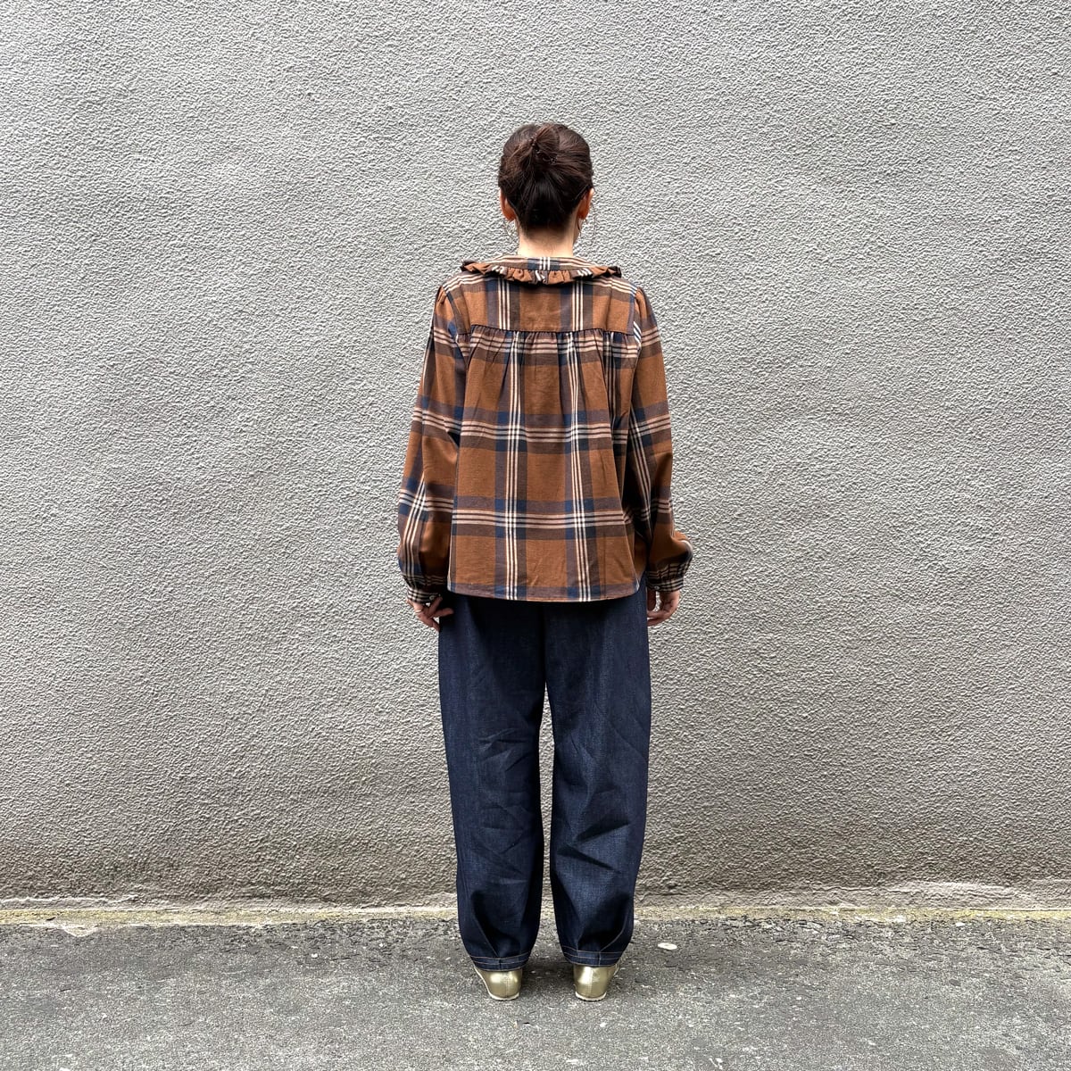 軽やかな生地感は、秋口の柔らかな風にも馴染み、